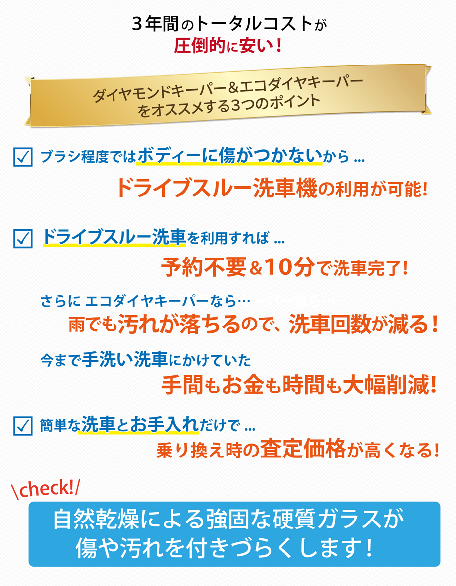 また、全店キーパーコーティングの技術資格を持ったスタッフが施工致します!